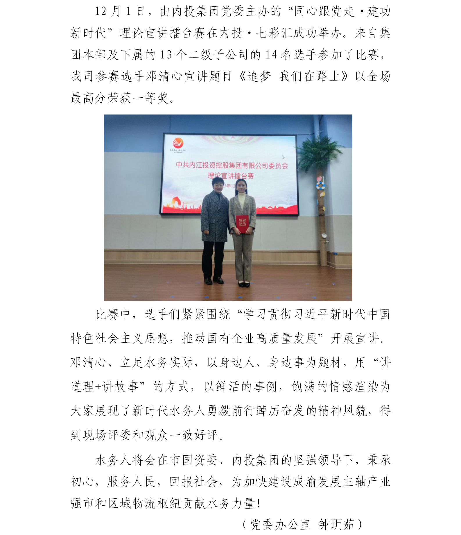 砥礪奮進水務(wù)人,同心共筑新時代——水務(wù)公司榮獲內(nèi)投集團理論演講擂臺賽一等獎