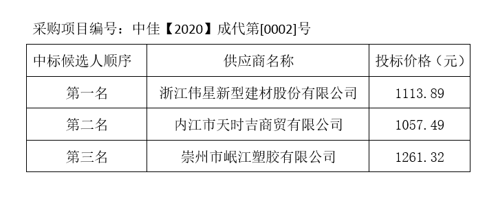 內(nèi)江市水務(wù)有限責(zé)任公司PPR給水管及管件采購項(xiàng)目評標(biāo)結(jié)果公示