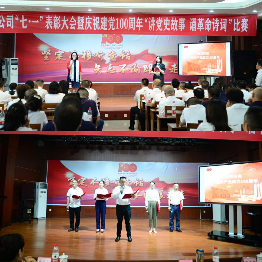 6月30日下午,在中國共產(chǎn)黨成立100周年之際,為表彰先進,弘揚正氣,樹立典型,進一步激勵各基層黨組織和廣大黨員履職盡責,擔當有為,推動企業(yè)持續(xù)向好發(fā)展。市水務公司黨委舉辦“七一”表彰大會暨慶祝建黨100周年“講黨史故事 誦革命詩詞”比賽。市國資委調研員梁素蓉,內投集團黨委委員、紀委書記曹德華出席會議,公司領導班子成員、各支部黨員代表近132余人參加會議。會議由黨委副書記、總經(jīng)理李濤主持。