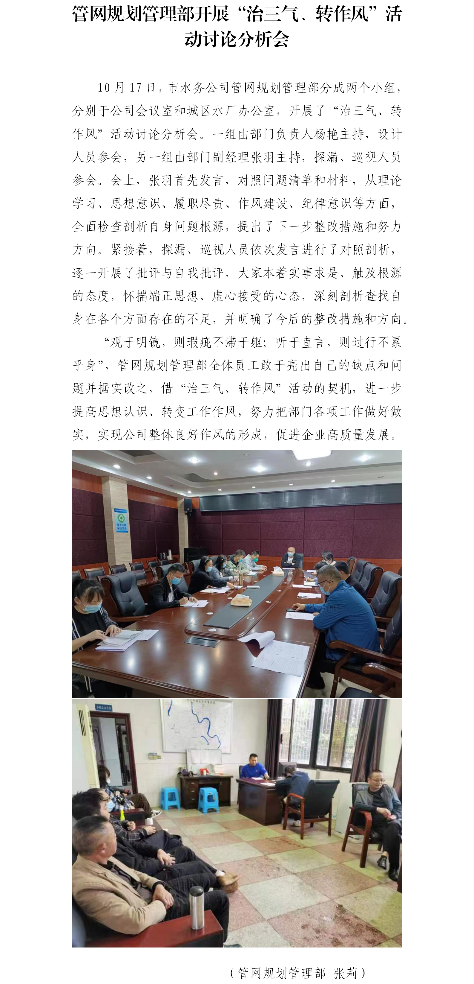 管網(wǎng)規(guī)劃管理部開展“治三氣、轉(zhuǎn)作風(fēng)”活動(dòng)討論分析會(huì)