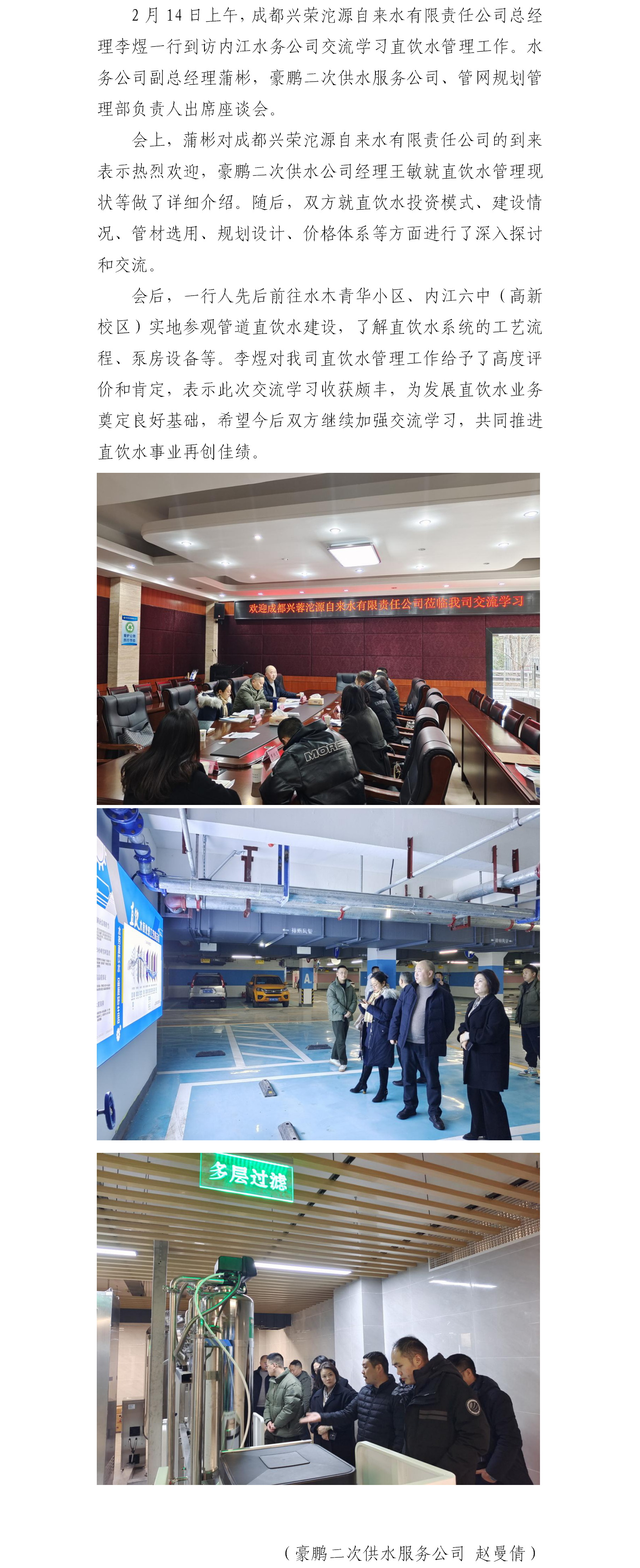 成都興榮沱源自來(lái)水有限責(zé)任公司到內(nèi)江水務(wù)交流直飲水管理工作