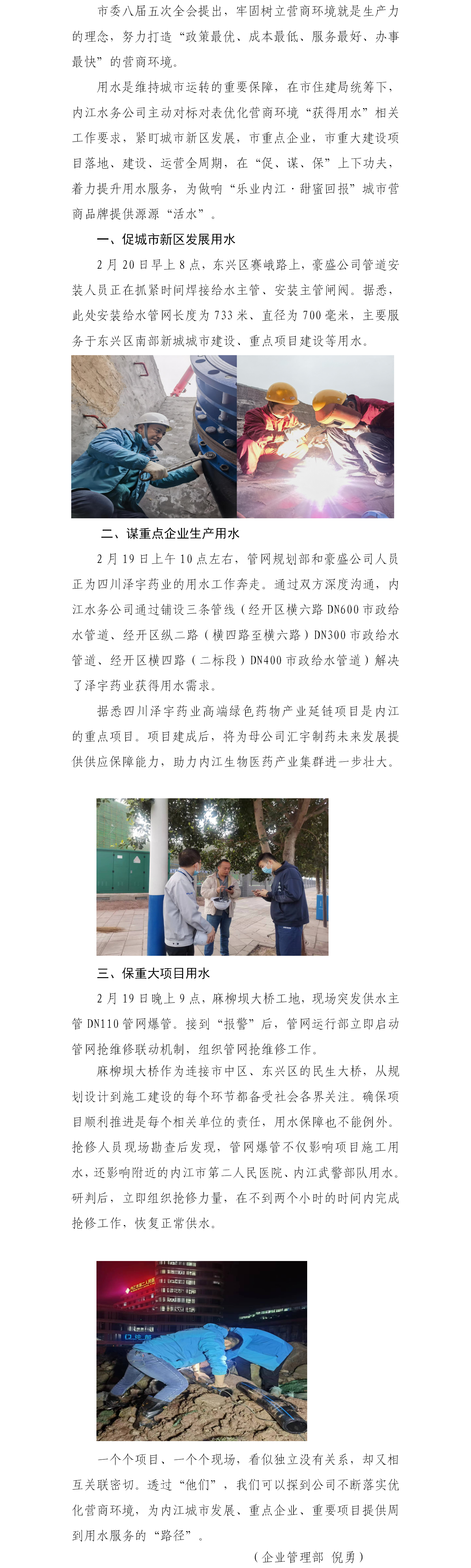 內(nèi)江水務(wù)優(yōu)化營商環(huán)境護(hù)航城市發(fā)展、重點企業(yè)、重大項目獲得用水