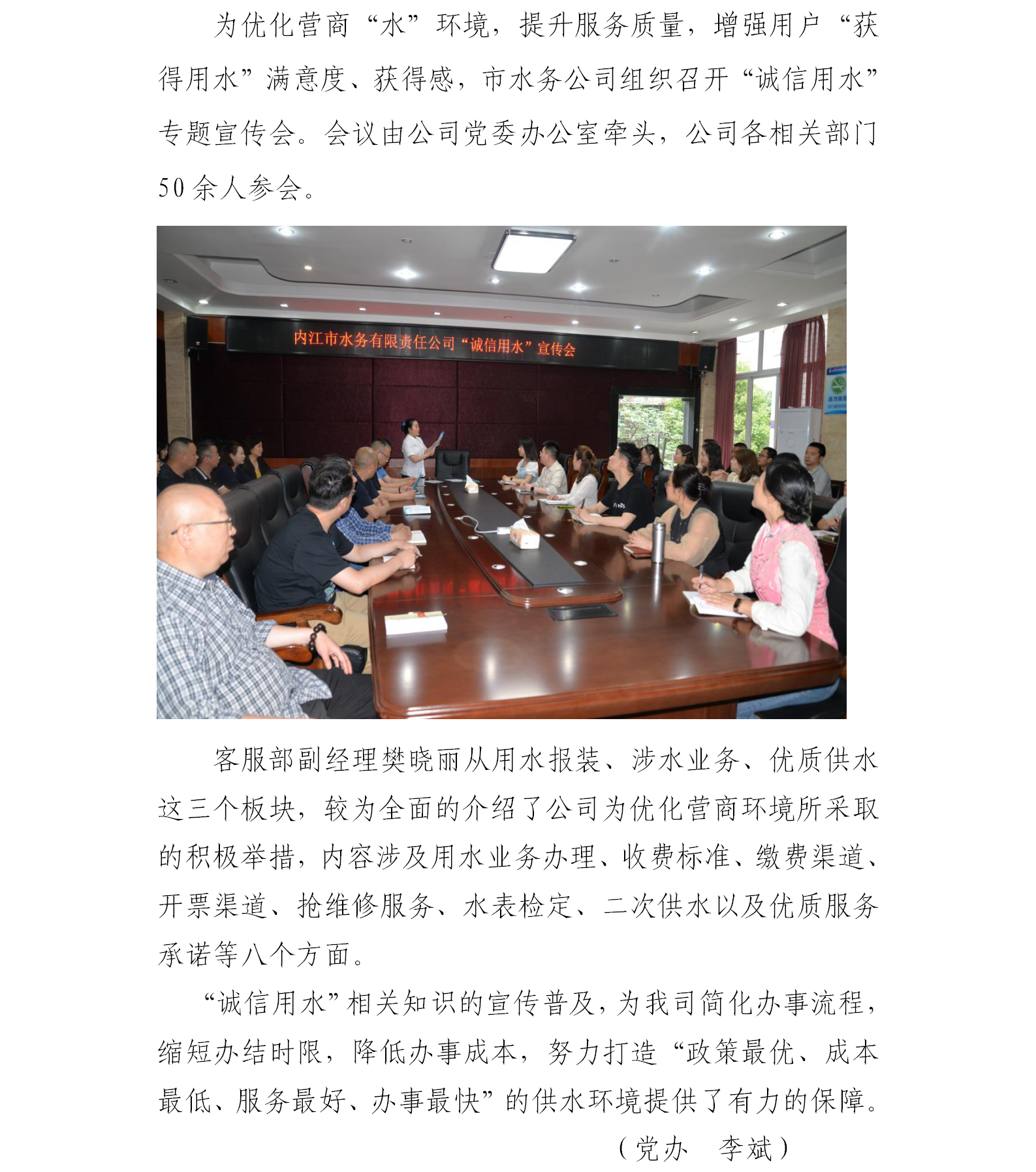 公司召開“誠信用水”宣傳會