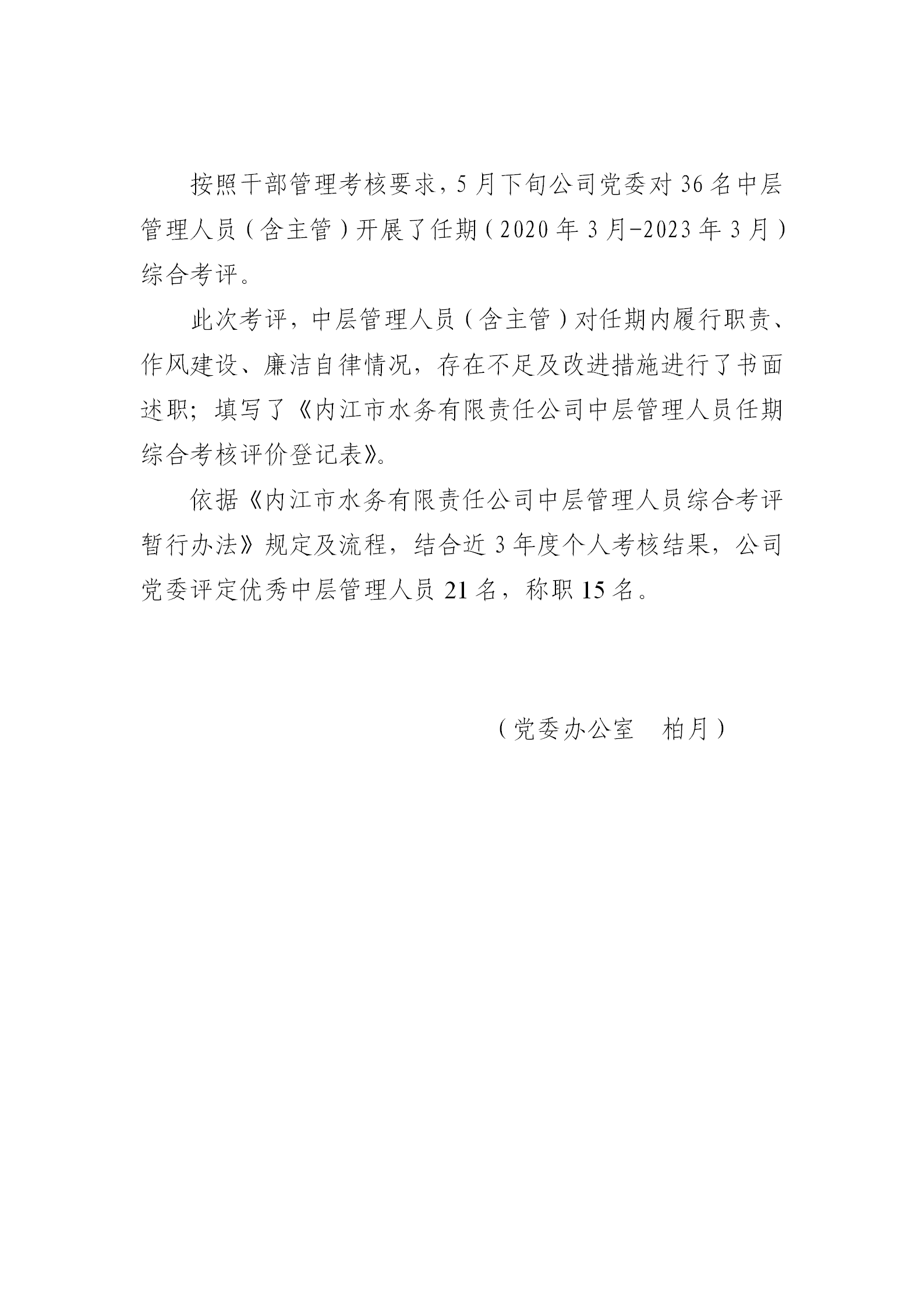 公司黨委開展中層管理人員任期綜合考評(píng)
