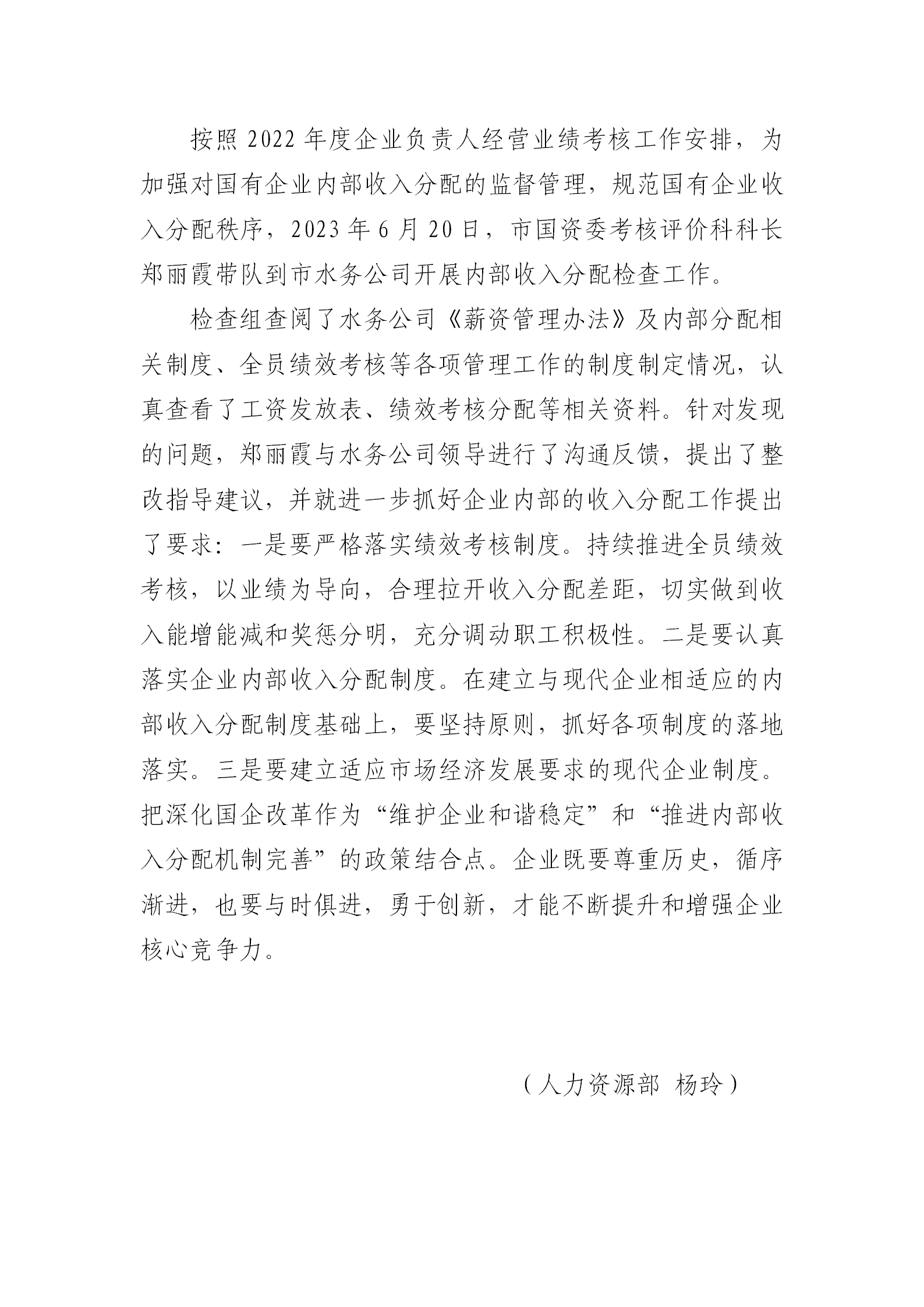 市水務(wù)公司接受市國資委內(nèi)部收入分配檢查