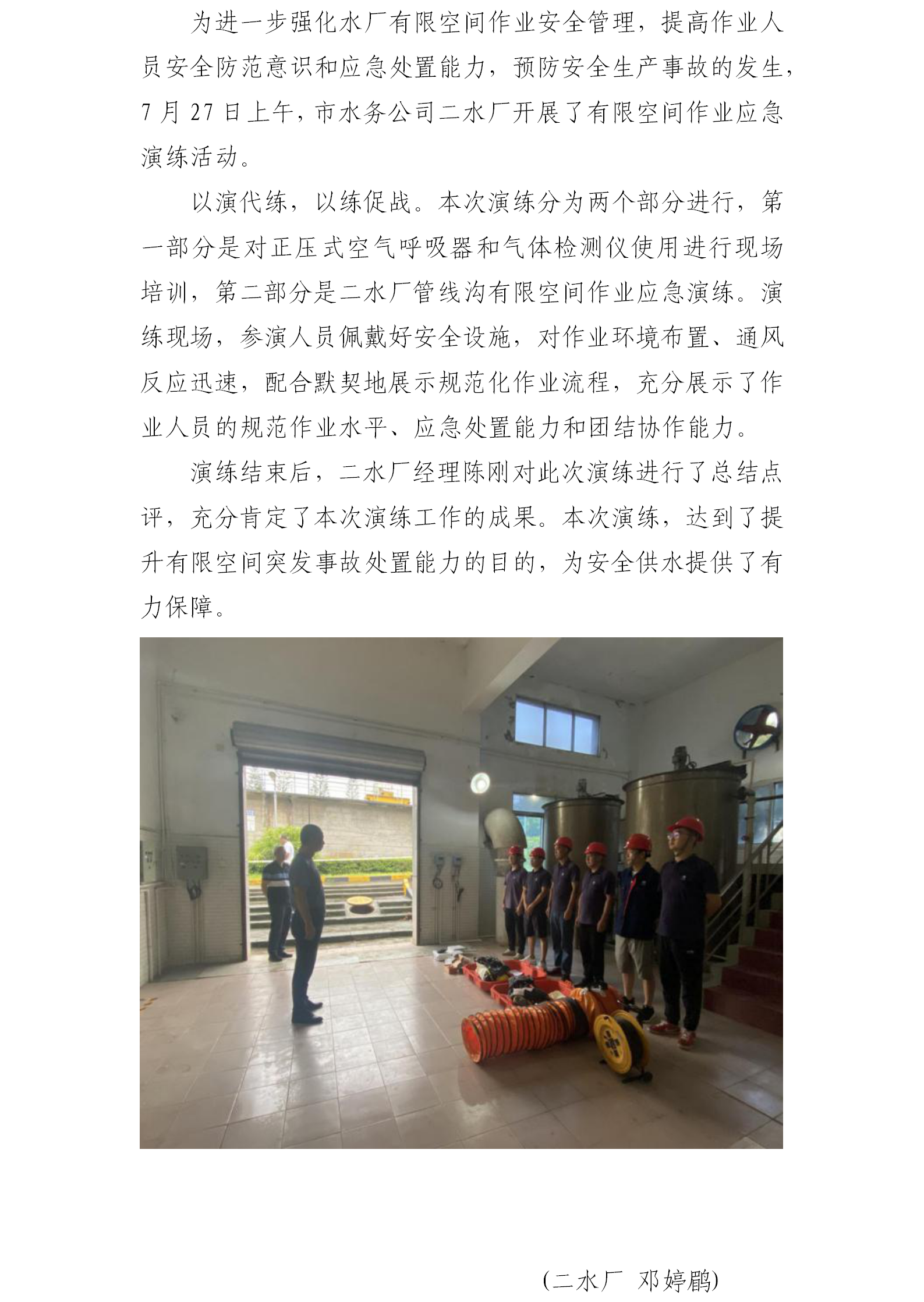 市水務(wù)公司二水廠開展有限空間應(yīng)急演練