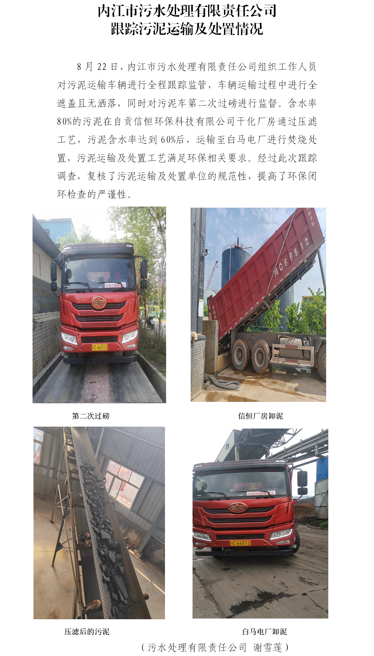 內(nèi)江市污水處理有限責(zé)任公司跟蹤污泥運(yùn)輸及處置情況