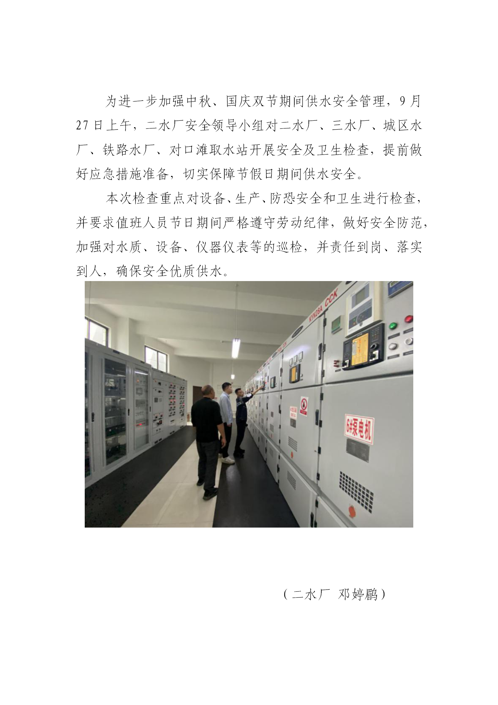 市水務(wù)公司二水廠開展節(jié)前安全生產(chǎn)檢查