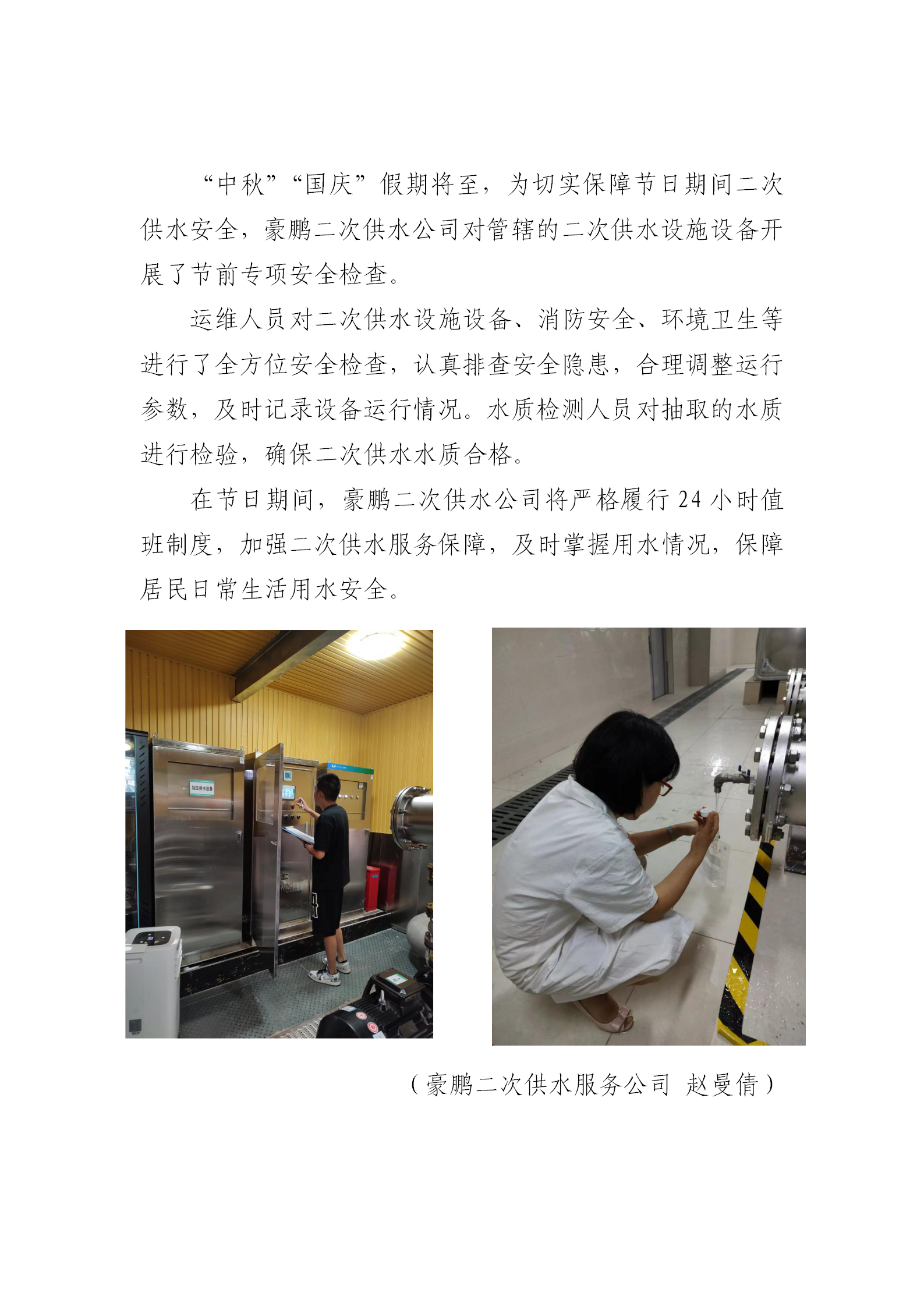 開展節(jié)前安全檢查 筑牢二次供水安全