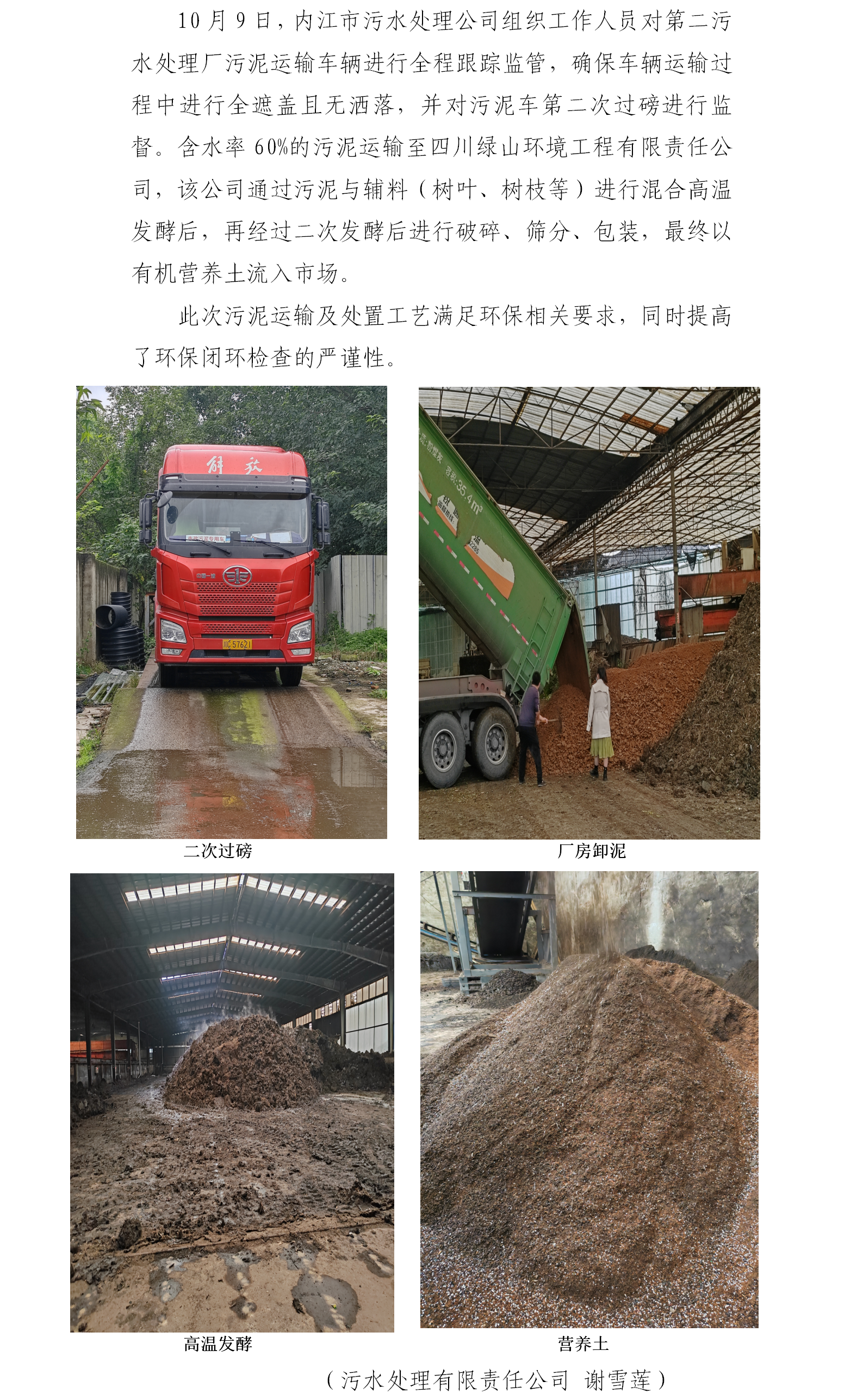 內(nèi)江市污水處理有限責(zé)任公司跟蹤污泥運(yùn)輸及處置情況