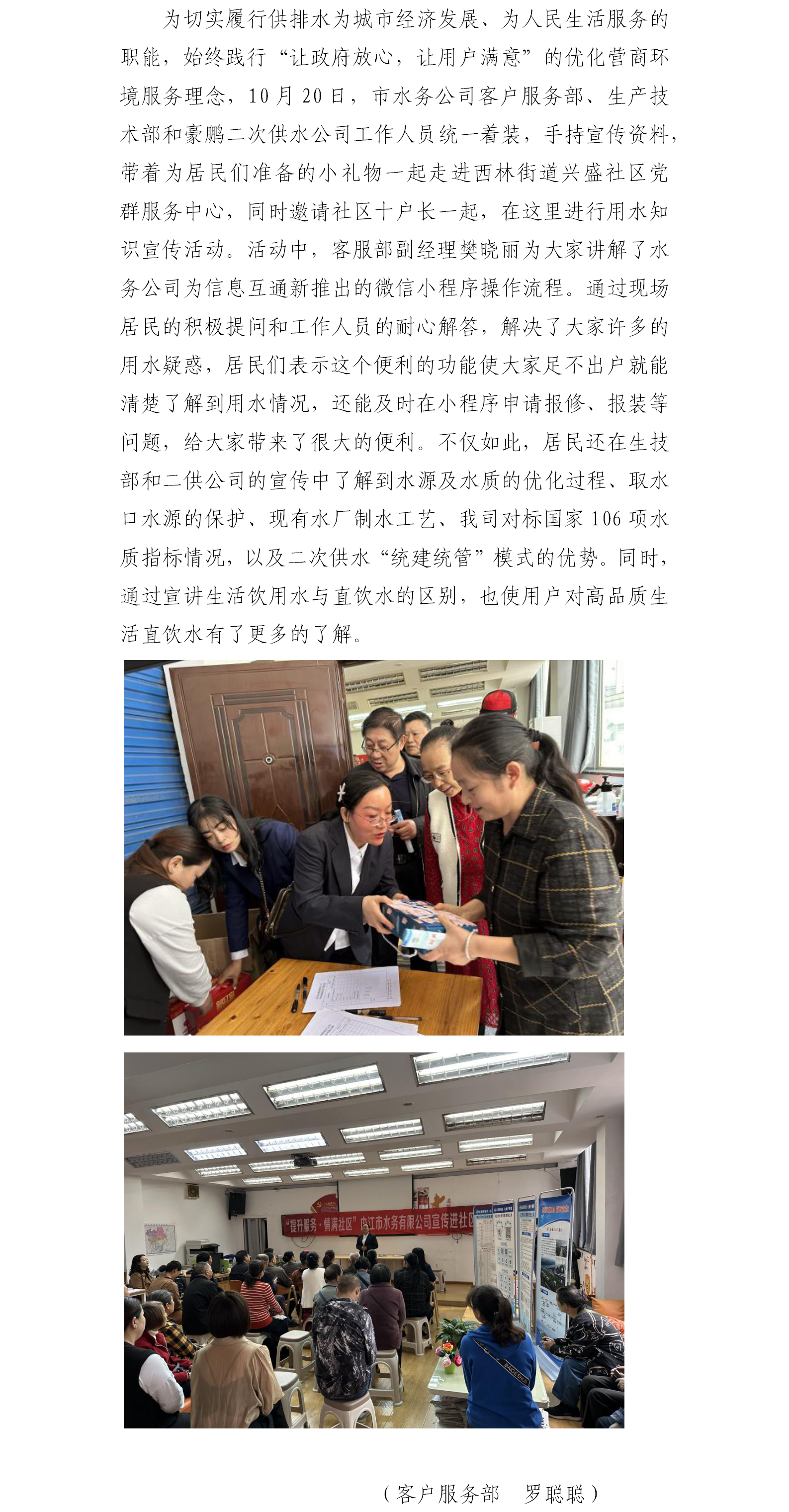 做好用水宣傳,服務千家萬戶