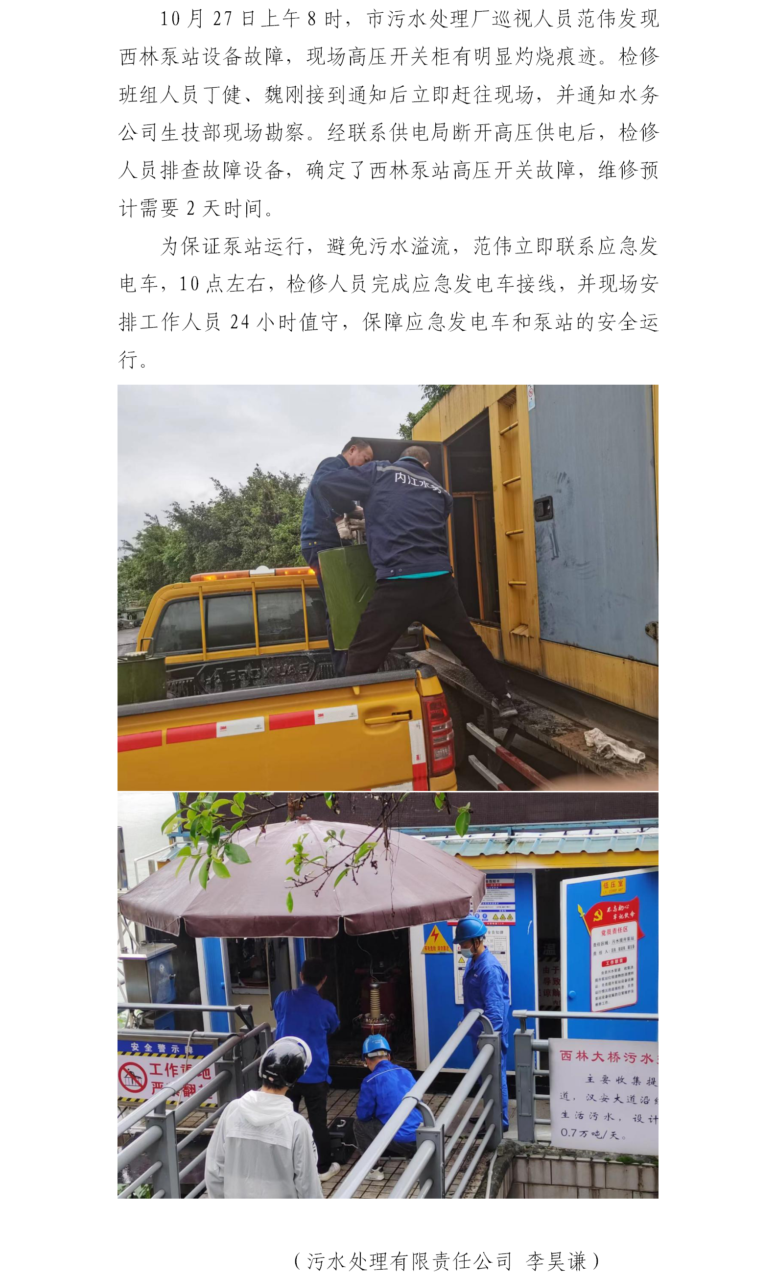 內(nèi)江市污水處理有限責(zé)任公司西林泵站應(yīng)急搶險處理