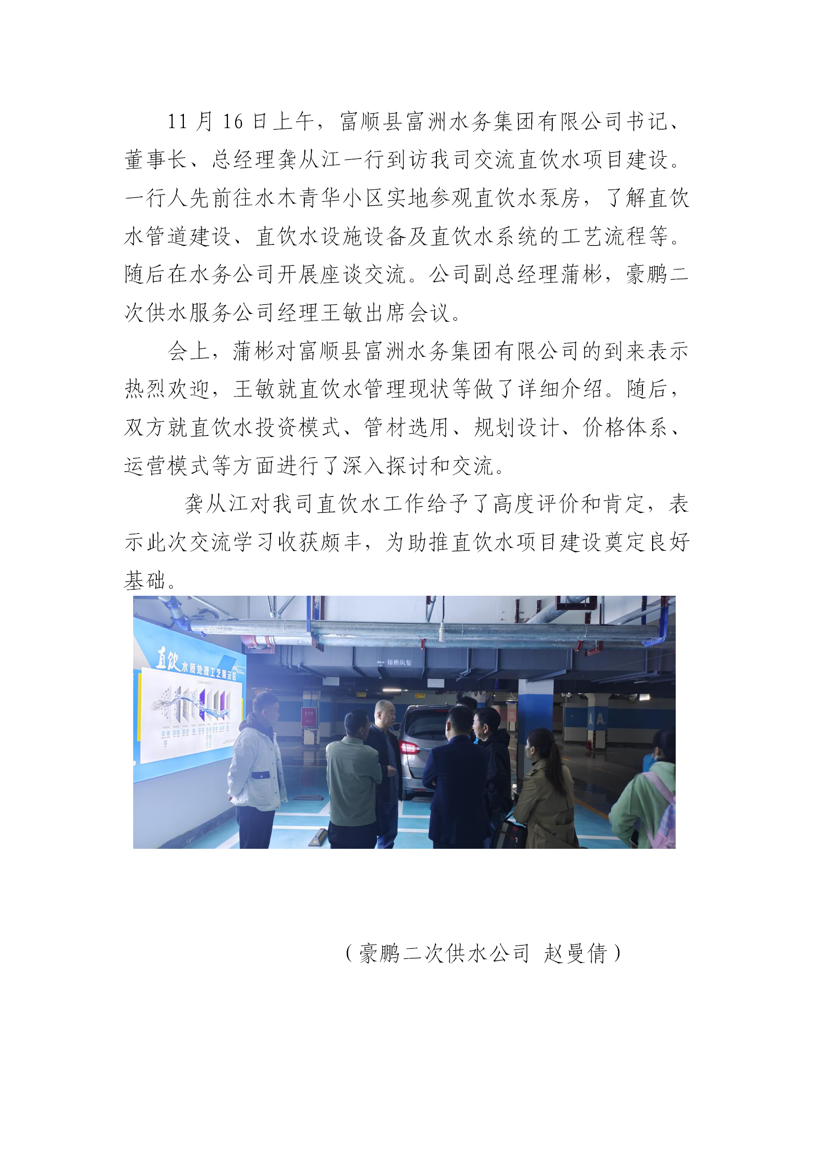 富順縣富洲水務(wù)集團(tuán)有限公司到我司開展直飲水項目建設(shè)交流