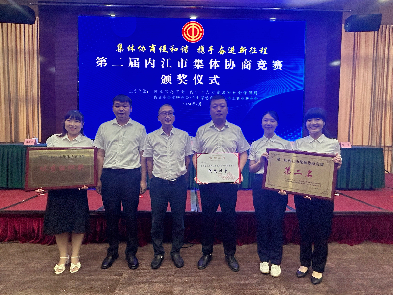 7月25日,由市總工會、市人社局、市企業(yè)家聯(lián)合會、市工商聯(lián)聯(lián)合舉辦的“集體協(xié)商促和諧 攜手奮進新征程”第二屆內江市集體協(xié)商競賽圓滿落幕。市水務公司代表隊經過初賽、復賽和決賽三輪比拼,在12支隊伍的激烈角逐中脫穎而出,最終榮獲第二名。