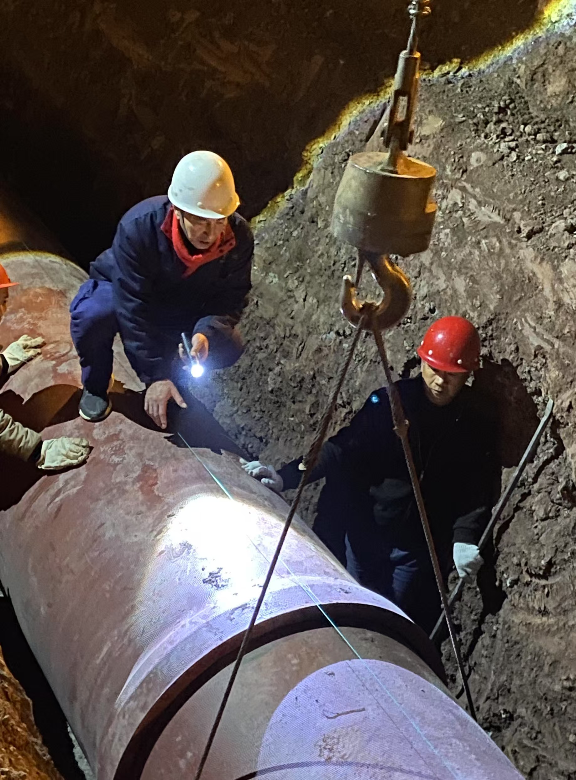 在寒風(fēng)中,工人們用雙手熟練地操作著各種冰冷的機(jī)械設(shè)備,進(jìn)行著五河路到大千路口段污水管網(wǎng)鋪設(shè)工作。他們始終將質(zhì)量放在首位,一次次地調(diào)整管道位置,確保每一根管道拼接合攏、無(wú)縫連接,每一根管道的連接。他們用實(shí)際行動(dòng)詮釋了水務(wù)人的責(zé)任、擔(dān)當(dāng)與堅(jiān)守。