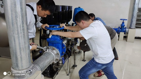 9月17日下午,豪鵬二供公司巡查人員在開展計(jì)劃性設(shè)備巡檢時(shí),在公園一號小區(qū)泵房內(nèi)發(fā)現(xiàn)加壓設(shè)備出現(xiàn)重大安全隱患,即高區(qū)加壓設(shè)備出水橫管出現(xiàn)嚴(yán)重傾斜和管道卡箍產(chǎn)生部分位移,造成與管道相連的柔性接頭存在隨時(shí)破裂漏水可能。在泵房隔壁就是整個(gè)小區(qū)配電室,如泵房內(nèi)管道漏水將直接對配電室造成威脅。面對險(xiǎn)情,豪鵬公司立即組織技術(shù)人員進(jìn)行搶修,于當(dāng)晚10:30成功消除安全隱患。此次搶修工作得到豪盛安裝公司的大力支持和配合。