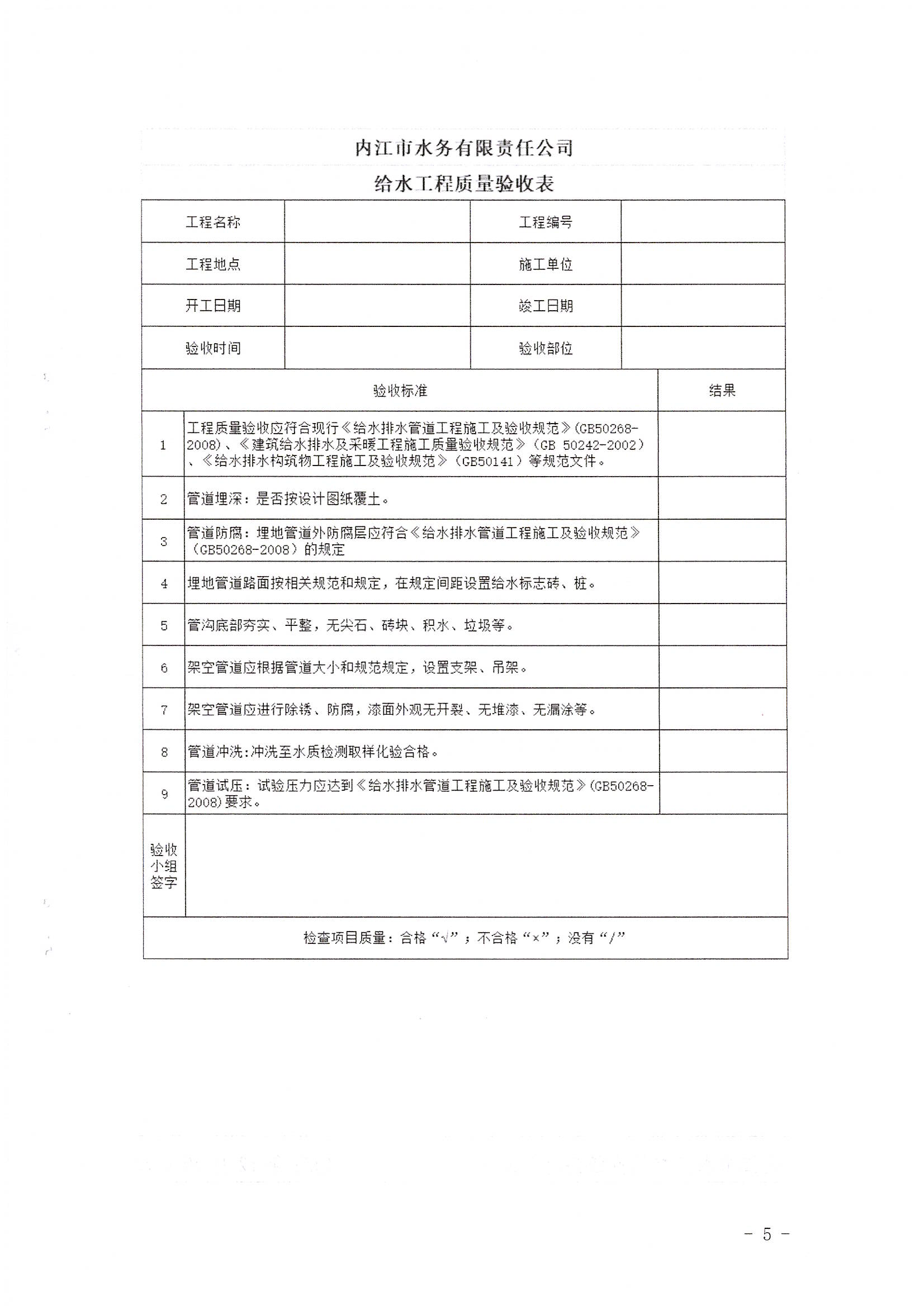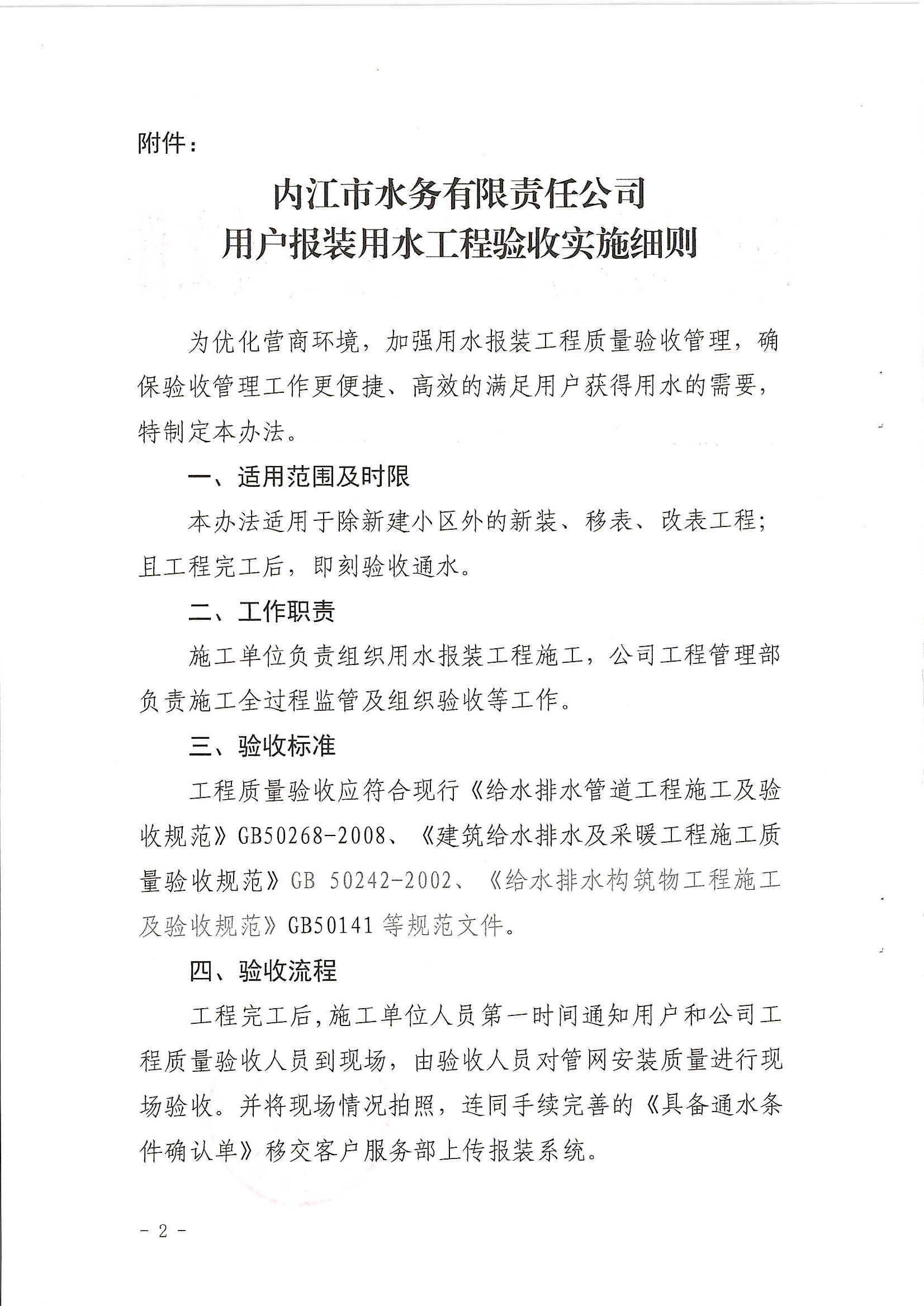 內(nèi)江市水務(wù)有限責任公司用戶報裝用水工程驗收實施細則