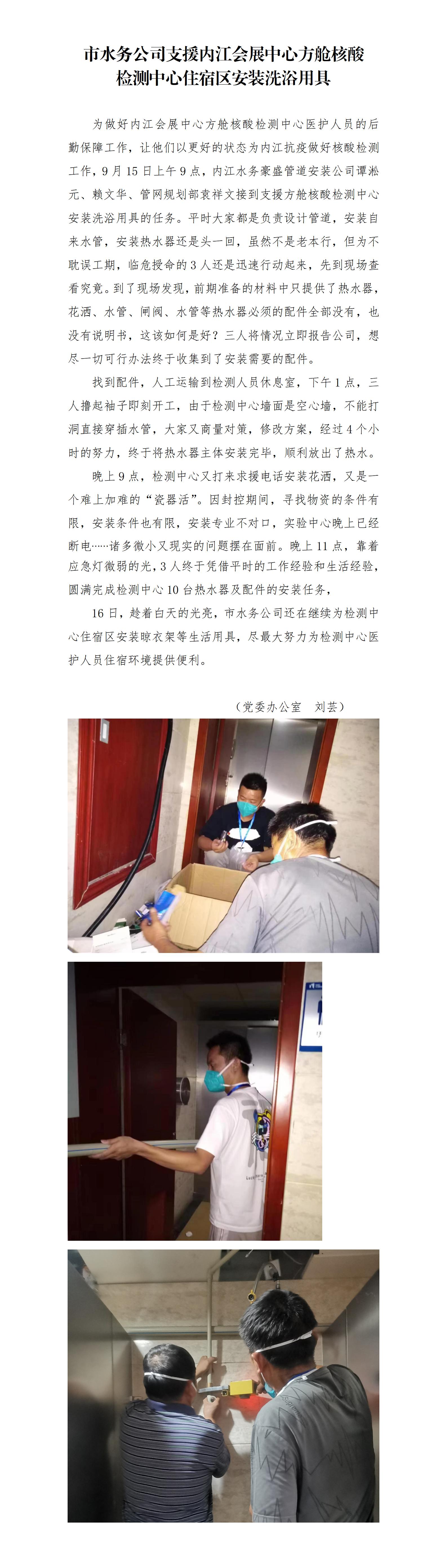 市水務(wù)公司支援內(nèi)江會展中心方艙核酸 檢測中心住宿區(qū)安裝洗浴用具