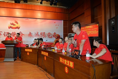 此次競賽以6個基層黨支部為單位組隊參賽,每支隊伍3名參賽隊員,且每支隊伍須有一名黨員干部帶頭參賽。競賽題目分為單(多)選題、判斷題、填空題、問答題等四種題型,主要包含了《中國共產(chǎn)黨黨章》、《中國共產(chǎn)黨支部工作條例》、《中國共產(chǎn)黨紀律處分條例》等方面的內(nèi)容。