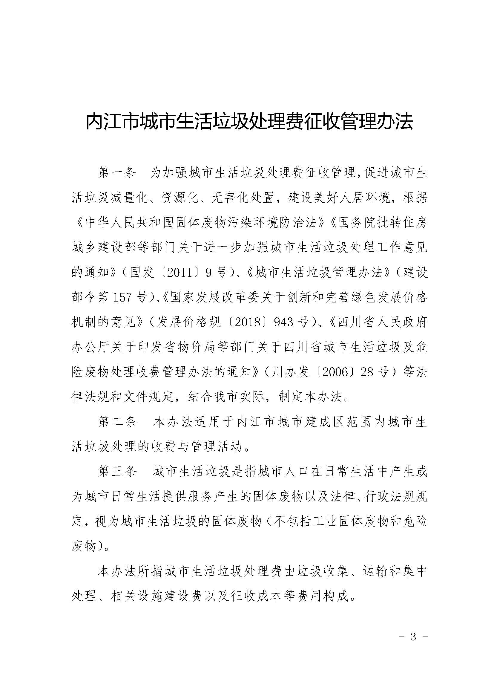 關于印發(fā)《內江市城市生活垃圾處理費征收管理辦法》的通知