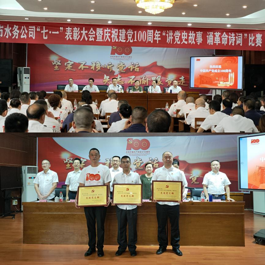 6月30日下午,在中國共產(chǎn)黨成立100周年之際,為表彰先進,弘揚正氣,樹立典型,進一步激勵各基層黨組織和廣大黨員履職盡責,擔當有為,推動企業(yè)持續(xù)向好發(fā)展。市水務公司黨委舉辦“七一”表彰大會暨慶祝建黨100周年“講黨史故事 誦革命詩詞”比賽。市國資委調研員梁素蓉,內投集團黨委委員、紀委書記曹德華出席會議,公司領導班子成員、各支部黨員代表近132余人參加會議。會議由黨委副書記、總經(jīng)理李濤主持。