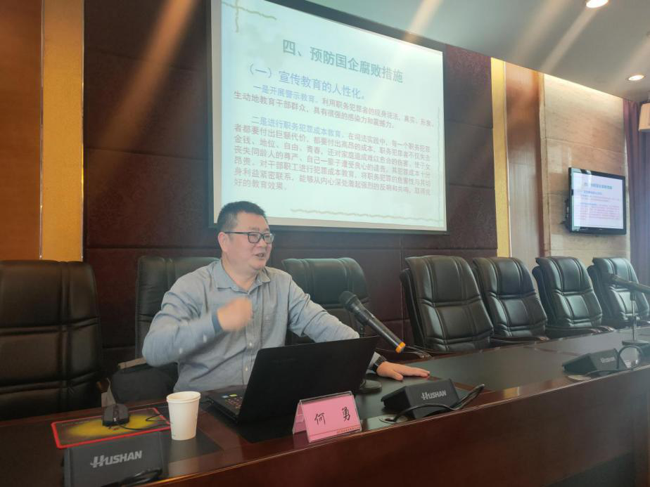 講座上,何勇以“國有企業(yè)預(yù)防腐敗實(shí)踐探索”為題,從建國以來反腐敗歷史的簡(jiǎn)要回顧、當(dāng)前國企領(lǐng)域反腐敗的形勢(shì)、水務(wù)企業(yè)違紀(jì)違法典型案例、預(yù)防國企腐敗措施四個(gè)方面,剖析腐敗根源,深入淺出地將國有企業(yè)預(yù)腐防變工作做了詳細(xì)的梳理和講解,具有很強(qiáng)的教育性和警示性。公司黨委副書記、總經(jīng)理李濤結(jié)合講座內(nèi)容,對(duì)進(jìn)一步抓好黨風(fēng)廉政工作提了四點(diǎn)要求:一是要強(qiáng)化政治定力;二是要抓實(shí)紀(jì)法學(xué)習(xí);三是要堅(jiān)持嚴(yán)于律己;四是要自覺接受監(jiān)督。李濤強(qiáng)調(diào),講座的目的在于進(jìn)一步提高干部職工對(duì)黨風(fēng)廉政建設(shè)重要性的認(rèn)識(shí),切實(shí)加強(qiáng)廉潔自律教育,將黨風(fēng)廉政建設(shè)不斷引向深入。
