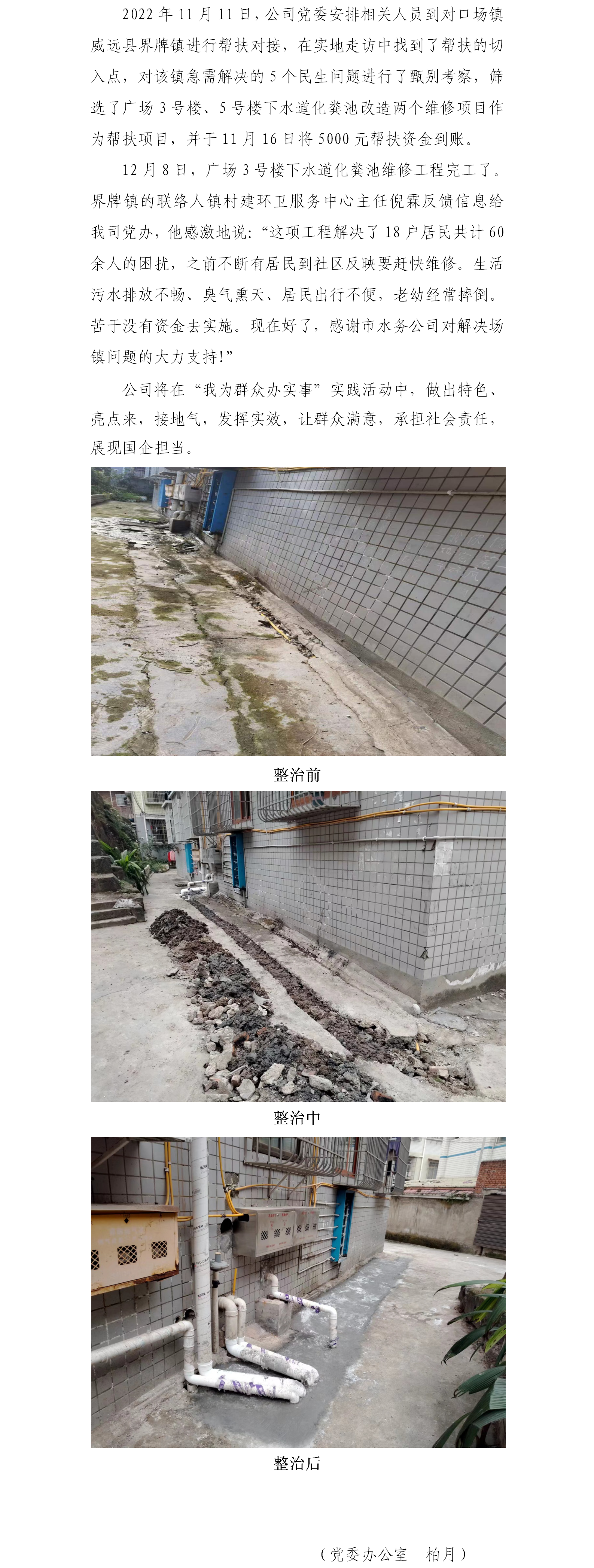 市水務(wù)公司投入場鎮(zhèn)建設(shè)的幫扶資金發(fā)揮出實效
