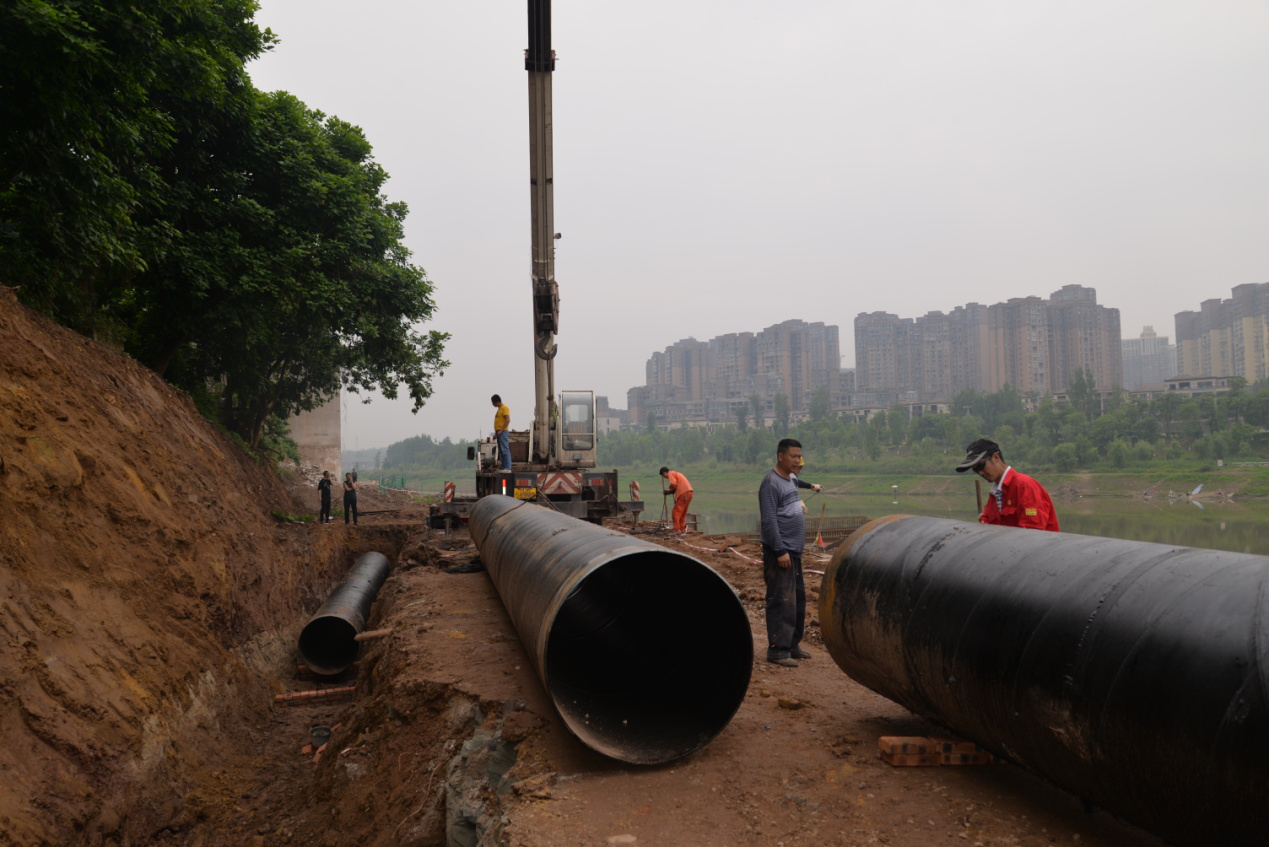 壽溪河至圣水寺排水管道擴建工程是我市整治黑臭水體的重要環(huán)保項目、應急工程,由我司下屬全資子公司豪盛管道安裝公司負責實施。于會文廳長在工地現(xiàn)場仔細查看了工程施工情況,對目前沱江河水質狀況、城市污水組成、所屬片區(qū)的人口數(shù)量以及工程項目的推進情況等問題進行了詳細了解,公司副總經理唐賢彬就領導關心的問題做了詳細匯報。
