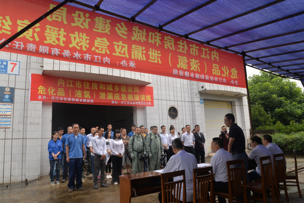 2017年6月16日上午,為做好危化品安全管理工作,保安全供水,公司在二水廠成功進行液氯泄漏應急救援演練。本次演練,由市住建局主辦、公司承辦,公司黨委書記、董事長、總經理寧印福任總指揮,總工程師蒲彬任現(xiàn)場總指揮,生產技術部組織,二水廠具體實施,共計 50多人參與演練。