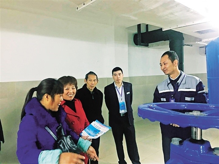 二次供水是什么?對(duì)居民用水有什么影響?平時(shí)要如何維護(hù)?如何繳納二次供水服務(wù)費(fèi)?活動(dòng)過程中,二次供水公司管理人員在水泵房?jī)?nèi)詳細(xì)向居民介紹二次供水設(shè)施的基本構(gòu)造和原理,并耐心解答用戶提出的問題。