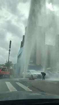 搶修人員到達現(xiàn)場后,發(fā)現(xiàn)消火栓已被撞斷,大量自來水噴涌而出,形成10多米高的水柱,附近道路積水嚴重,對附近學校人員的出行造成嚴重影響。搶修隊員在渾濁的閘閥井里摸索著關(guān)閉閥門,及時排除安全隱患,經(jīng)過近一個小時的搶修,11時許,完成搶修,恢復供水。