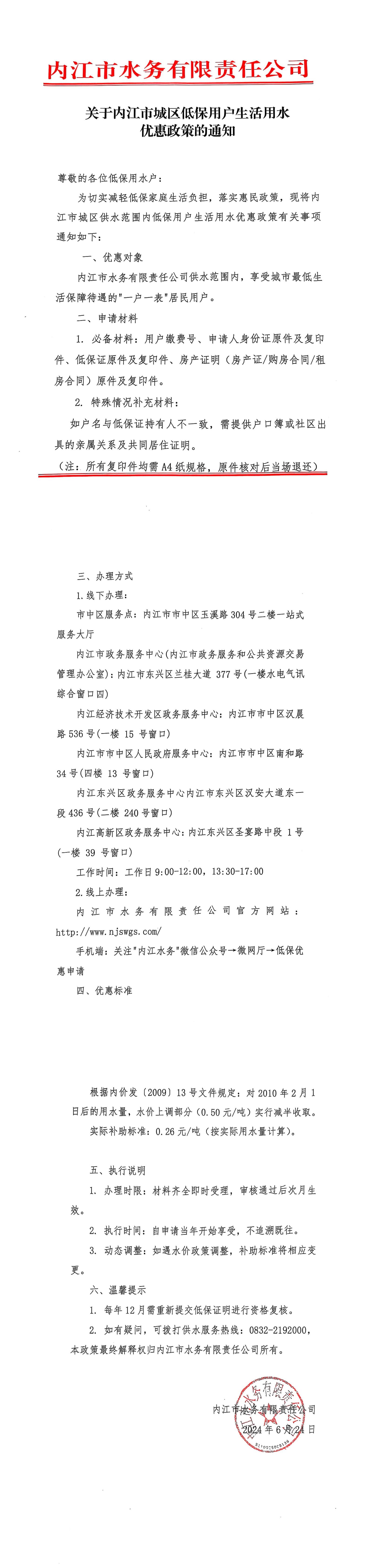 關(guān)于內(nèi)江市城區(qū)低保用戶生活用水優(yōu)惠政策的通知