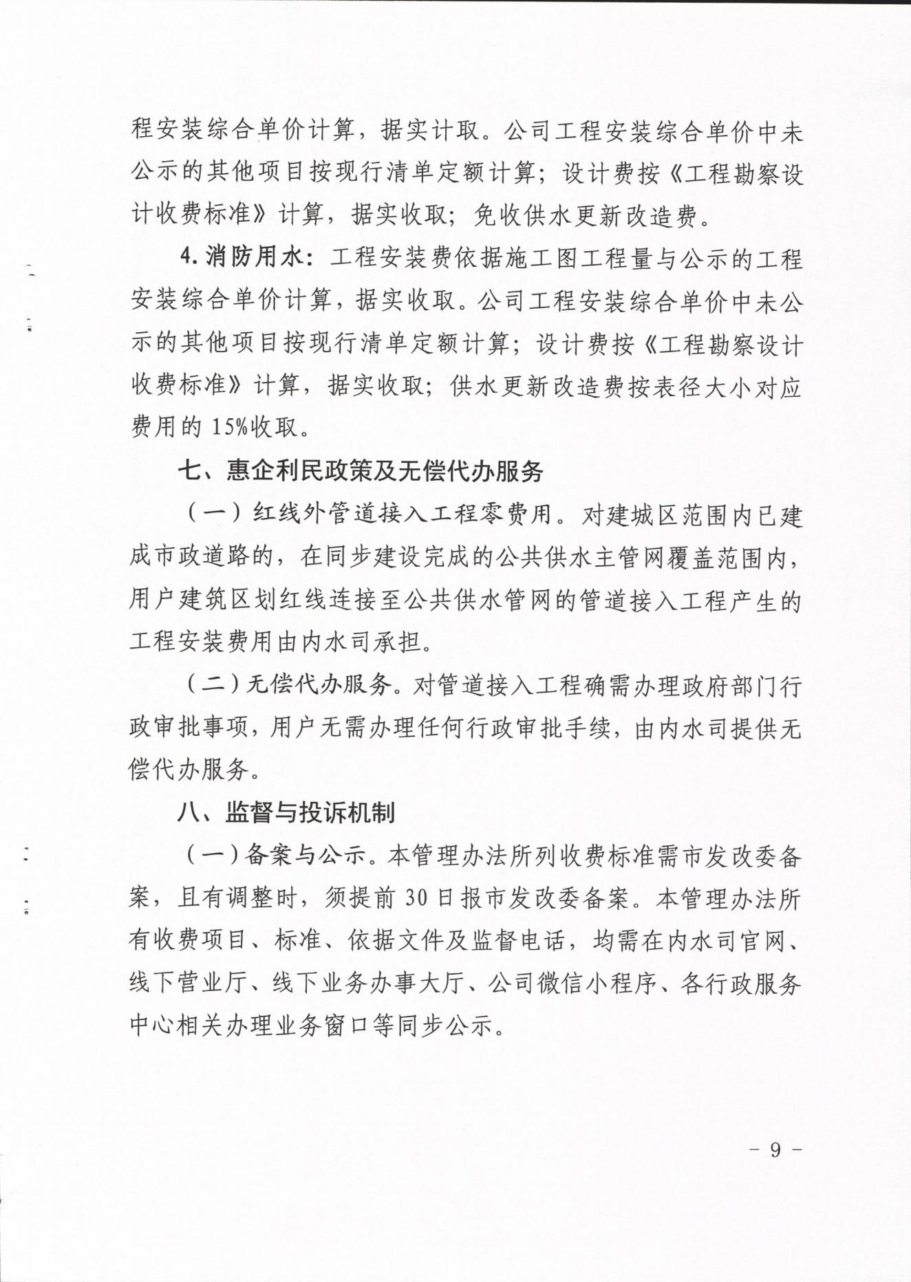 內(nèi)江市水務(wù)有限責(zé)任公司供水工程安裝及供水管道更新改造收費管理辦法(試行)