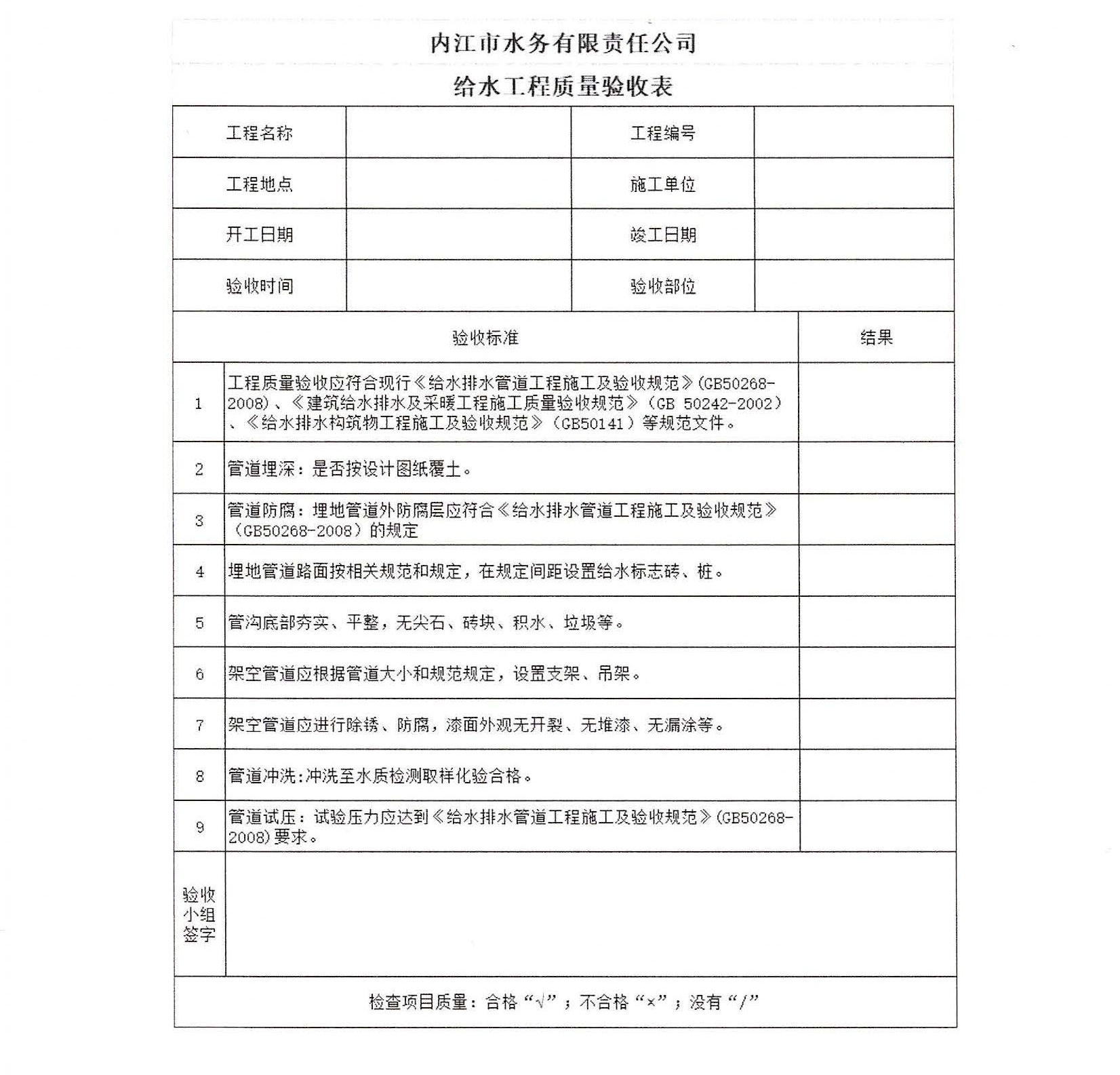 內(nèi)江市水務有限責任公司用戶報裝用水工程驗收實施細則
